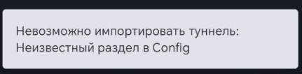 При возникновении ошибки "Невозможно импортировать туннель: Неизвестный раздел в config",